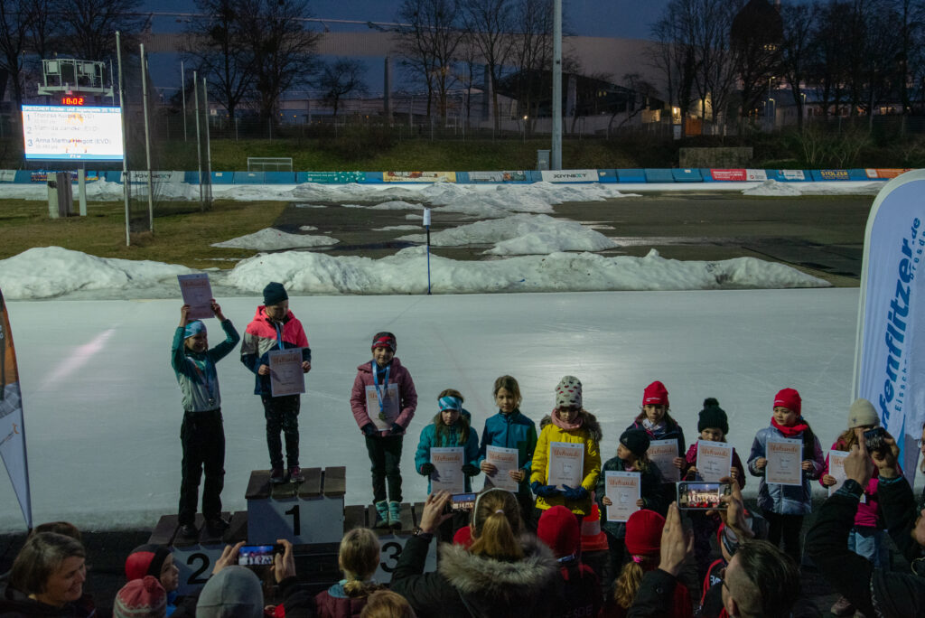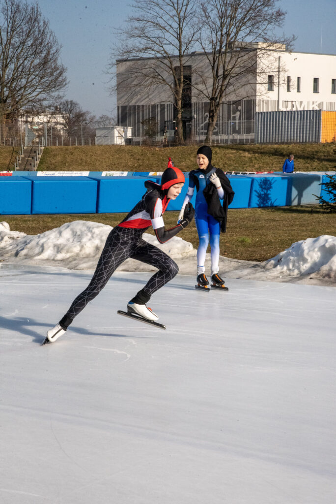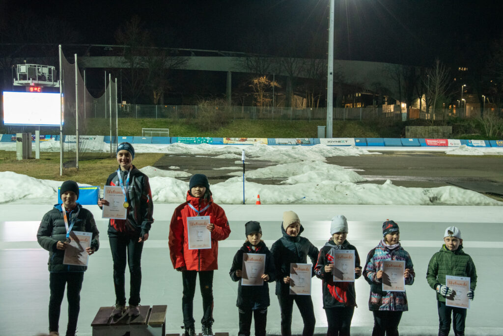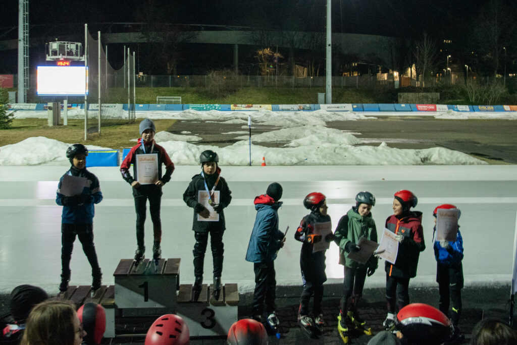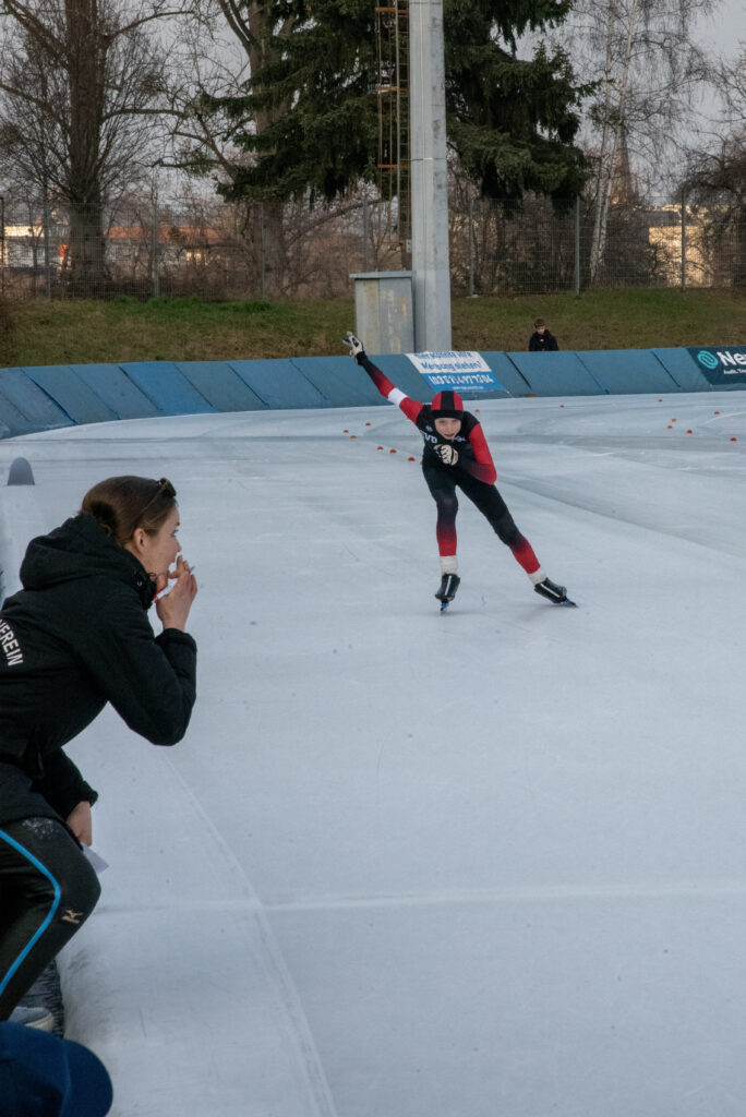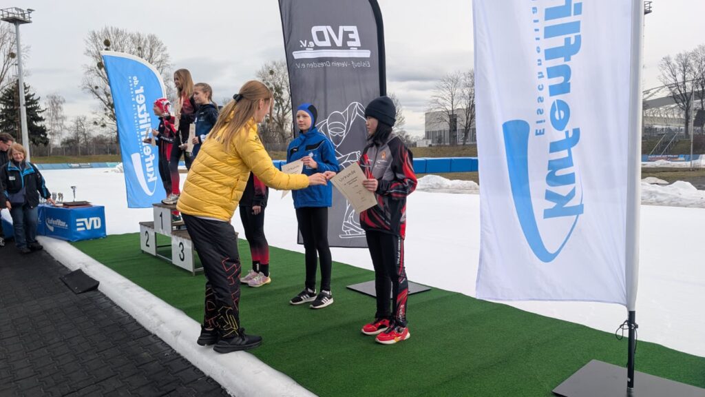 Auf dem Wettkampfprogramm standen die Disziplinen 200 m, Parcours, 200 m Massenlauf (rechtsrum) sowie die Staffel. Die kleinsten Kufenflitzer des EVD e. V. haben sich tapfer durch den langen Wettkampf gekämpft und beim großen Parcours vollste Konzentration gezeigt. In den Massenläufen bewiesen die Dresdner all ihr Können und setzten sich bei den Mädchen und Jungen der AK F1(8 und jünger) durch. In der ältesten Kategorie E1 (AK 10) gingen 14 Sportlerinnen und Sportler an den Start, wovon alle über die 200m neue persönliche Bestzeiten erzielten. Einige von ihnen konnten sich zudem über das Erfüllen der Normzeiten freuen – ein schöner Beleg für die kontinuierliche Trainingsarbeit und die sportliche Entwicklung der Kinder.