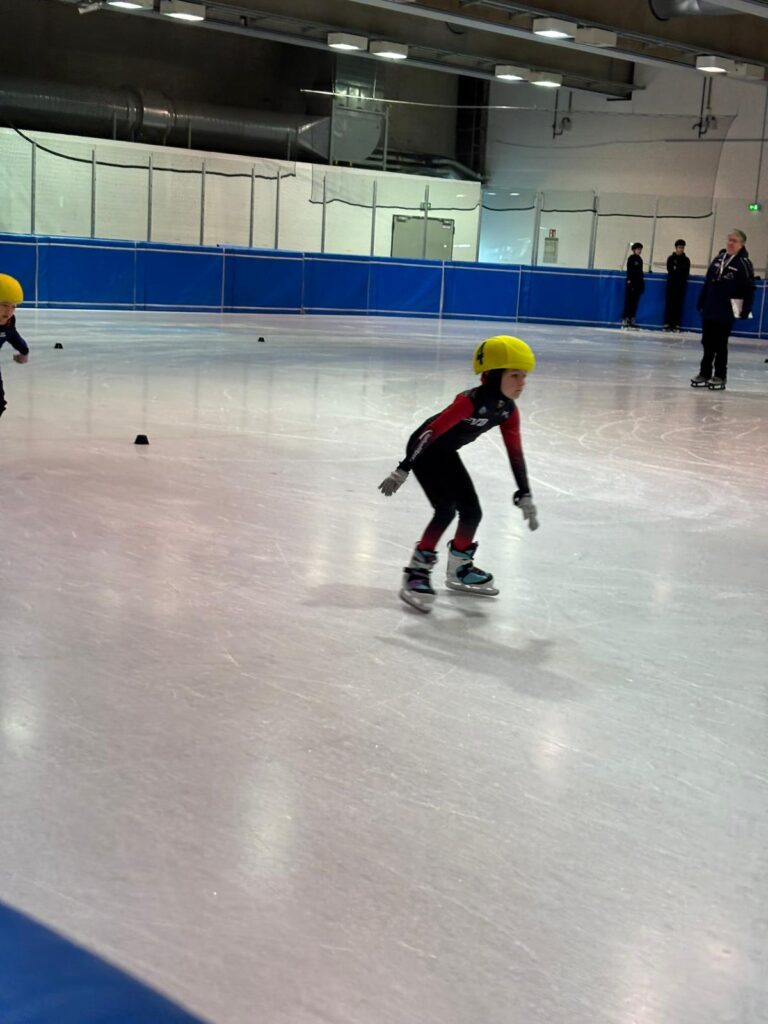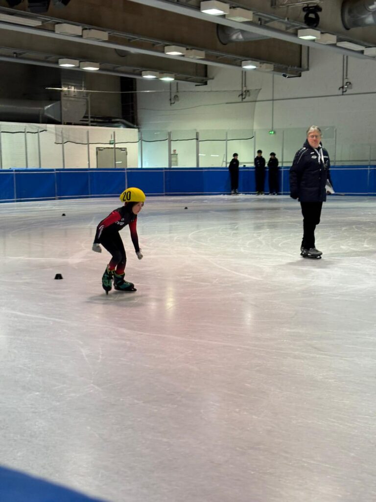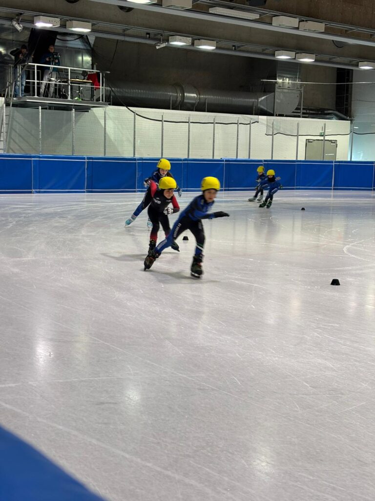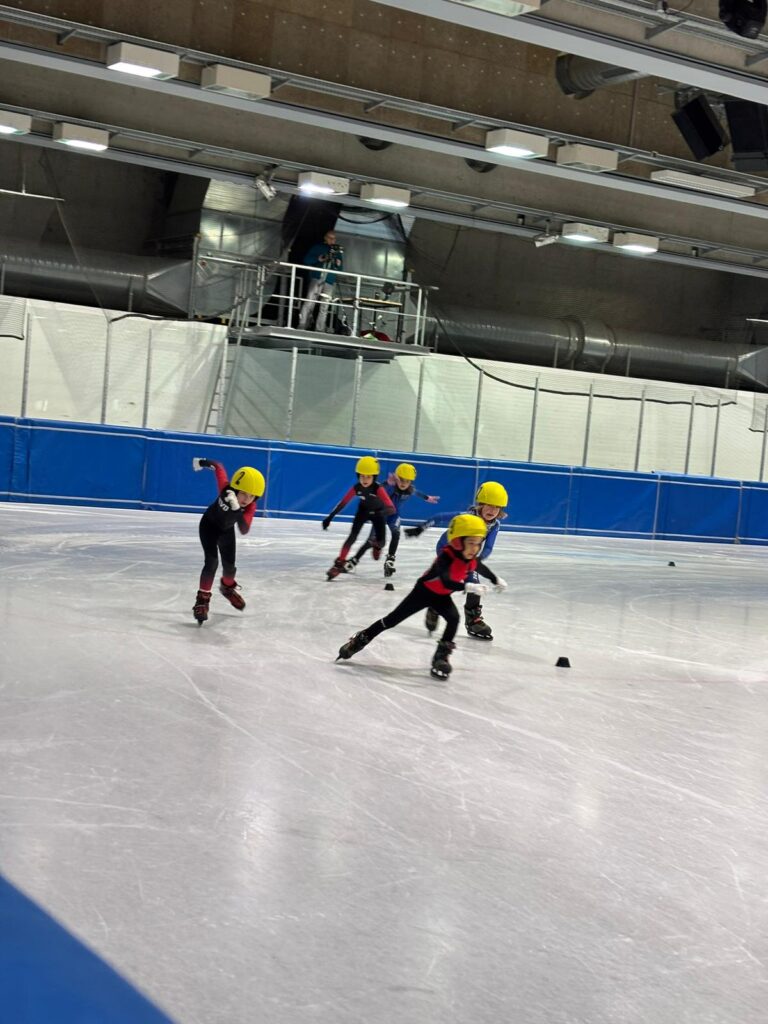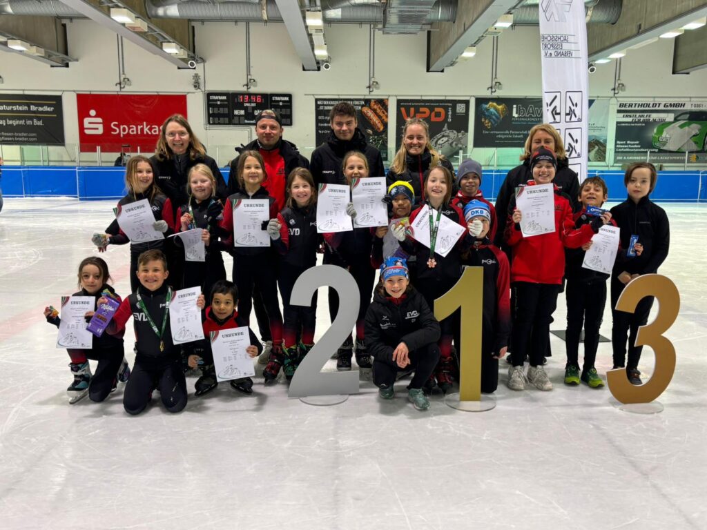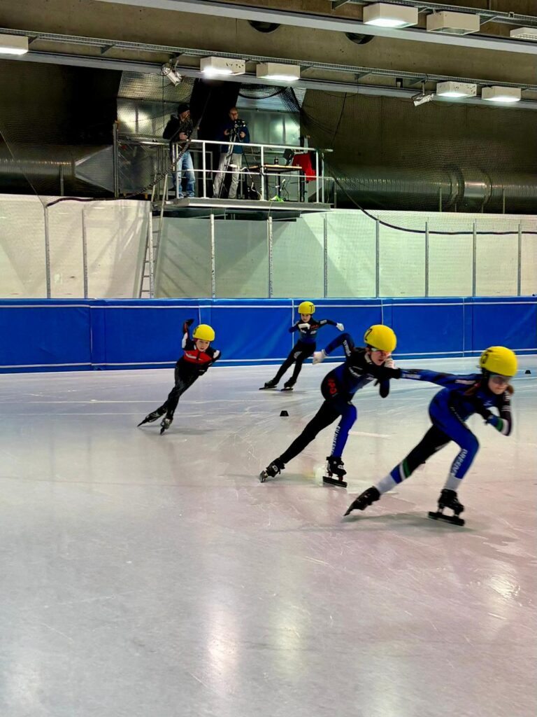 Was für ein Tag! Unsere kleinen Sportler hatten bereits Ende März die Chance, sich bei den Sächsischen Meisterschaften auf der 111 m Bahn mit echten Shorttrackern zu messen – und das hatte es in sich!