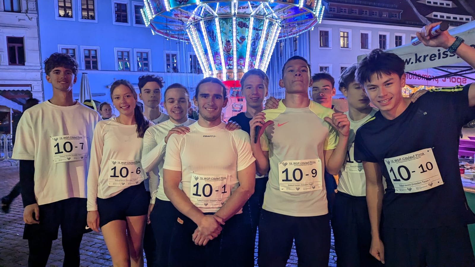 „Im Fackelschein durch die Nacht“ hieß es für eine Vielzahl ganz junger, jüngerer und bereits etwas älterer Sportler am 11.10.2024. Unter Leitung von Trainerin Linda Mavius stellten sich gleich 3 Teams beim Staffellauf – 10x1km durch die Pirnaer Altstadt – der Konkurrenz. Und dabei lieferte Team 1, die im Schnitt älteste und leistungsstärkste EVD-Staffel, mit Platz 2 richtig gut ab. Komplettiert wurde das Ergebnis vom jüngeren Team 2 auf Platz 9 und der jüngsten Staffel auf Platz 12.