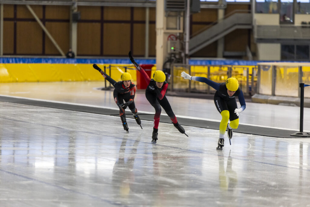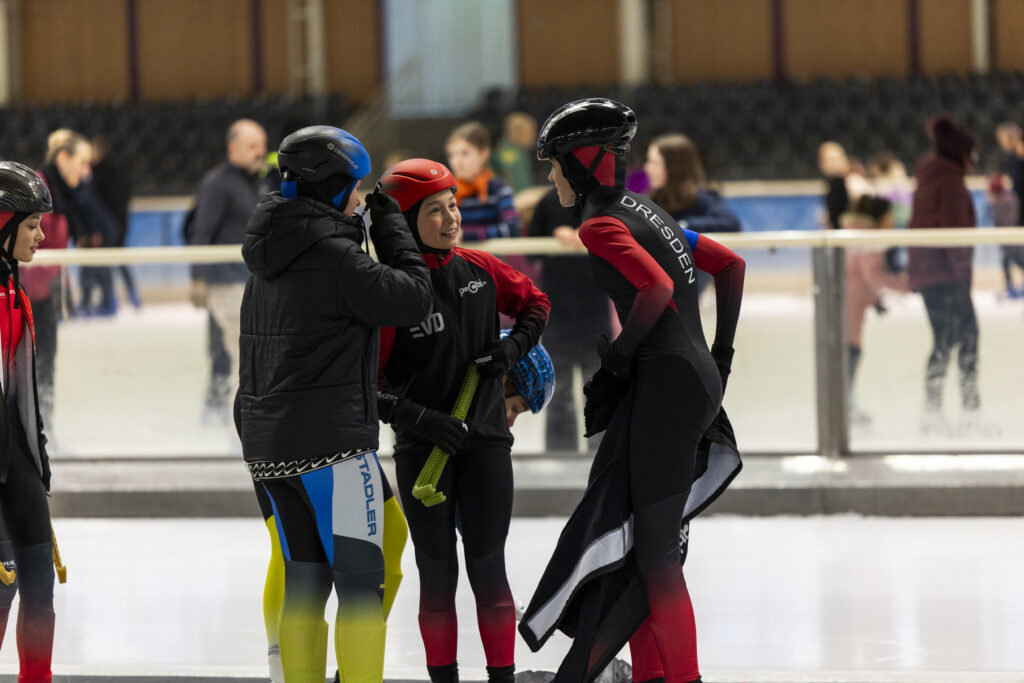 Am vergangenen Wochenende reisten Alexia Bazhan, Mina Sillke, Jasper Höher, Rebekka Näther, Ansgar Bräunlich, Jondine Skupin und Ole Kretschmar als Teil der sächsischen Landesauswahl zum 2. Pokalwettkampf um den diesjährigen DESG-Nachwuchs-Cup nach Berlin. Und auch, wenn man ohne Titel im Gepäck wieder die Heimreise antrat, können die Sportler angesichts zahlreicher erlaufener Kadernormen, persönlicher Bestzeiten und Podestplatzierungen sehr zufrieden sein. Nach 2 Wettkampftagen und insgesamt 6 gelaufenen Strecken reihten sich die EVD-Kufenflitzer im deutschlandweiten Starterfeld ihrer Altersklassen teilweise ganz vorn mit ein: