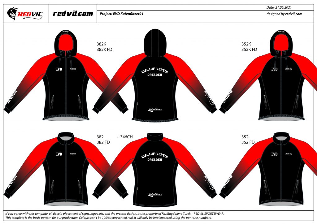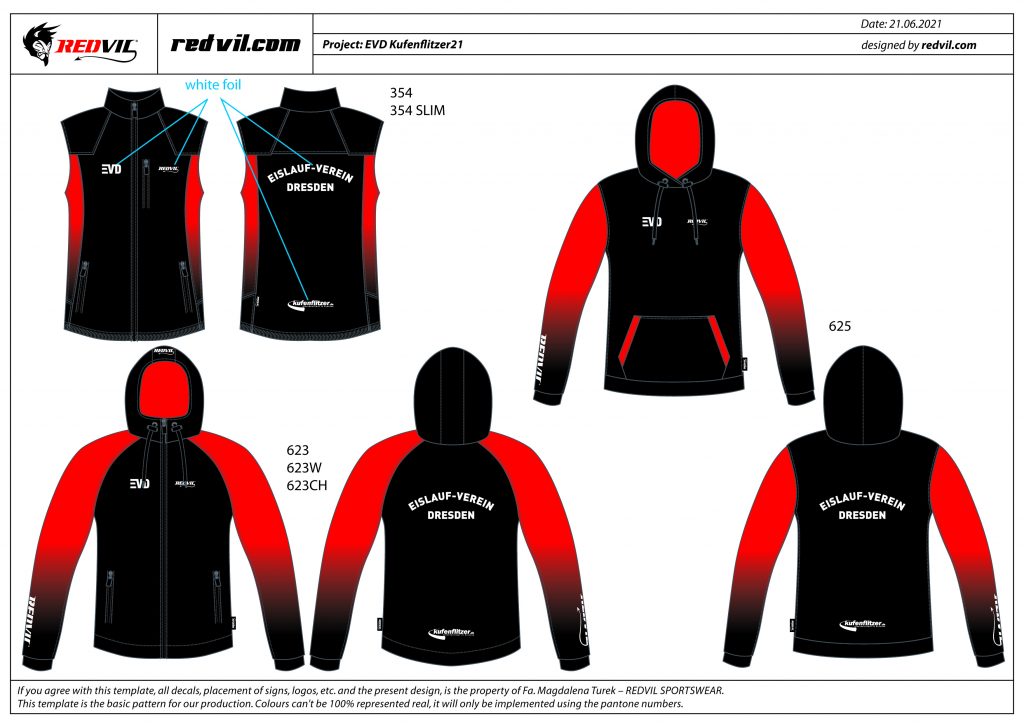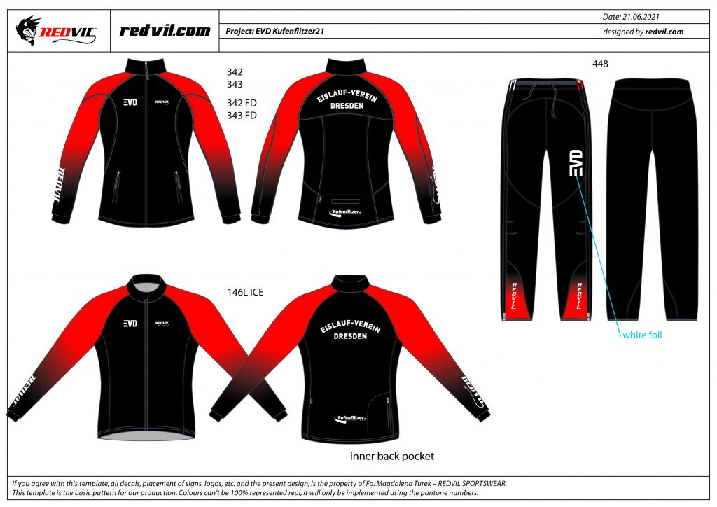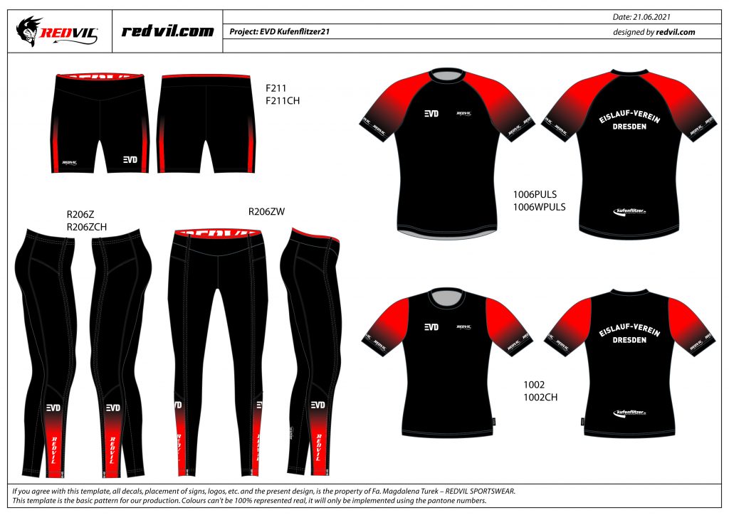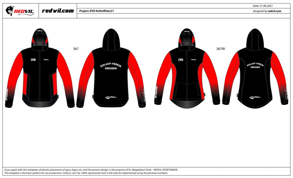 - Bezahlung ist nur in Vorkasse möglich: Preisliste, Bestellformular und Zahlungsinformationen können per E-Mail an bekleidung@kufenflitzer.de angefordert werden (nur für EVD-Vereinsmitglieder, bitte Namen des Sportlers angeben)
