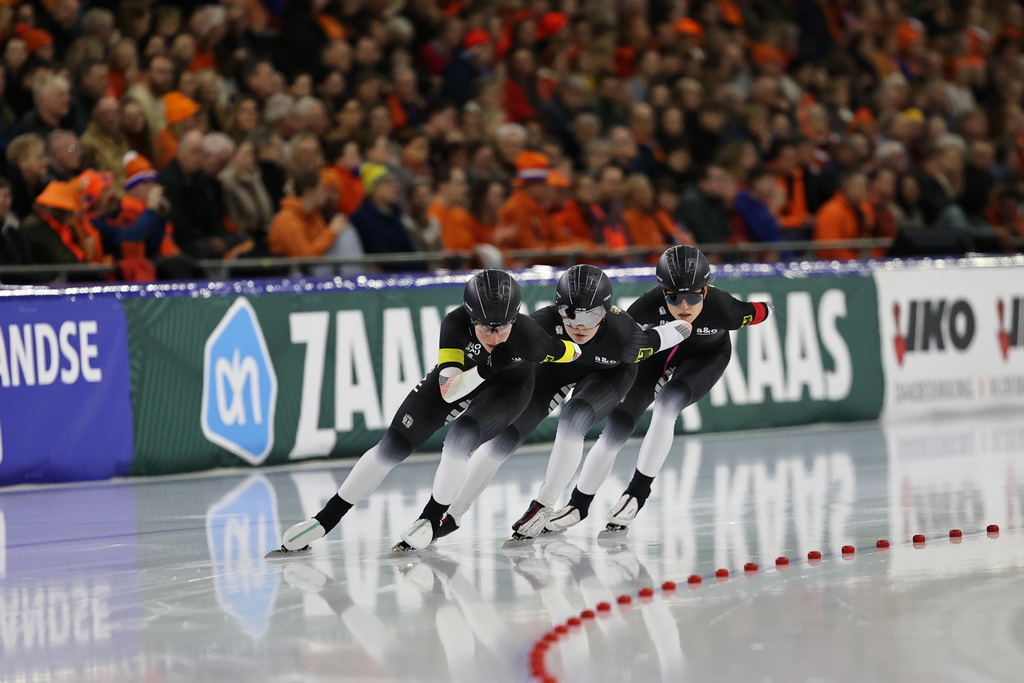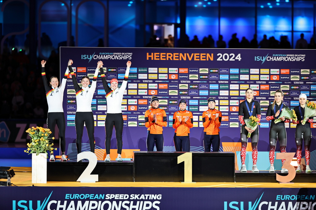 Das deutsche Damenteam mit Lea Scholz, Josie Hofmann und Josephine Schlörb hat bei der Europameisterschaft in Heerenveen überraschend die Silbermedaille in der Teamverfolgung gewonnen.