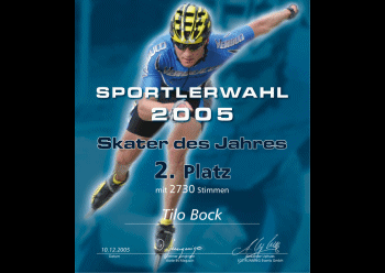Bei der als Leserumfrage durchgeführten Wahl belegte der EVD-Skater Tilo Bock (Team KIA-Germany) an seinem 30. Geburtstag völlig überraschend den zweiten Platz hinter Daniel Zschätzsch und vor dessen Bruder Benjamin (beide BG Groß-Gerau, Team Luigino-Powerslide).