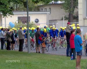 Etwa 18.30 Uhr rollten dann die Radler (unter ihnen bekannte und erfolgreiche Sportler wie Petra Behle/Biathlon, Eberhard Gienger/Kunstturnen, Marina Kielmann/Eiskunstlauf oder „Täve“ Schur und Klaus-Peter Thaler/Radsport) auf das Klinikgelände.