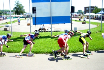 Am Sonntag stand dann noch das 5.000-Meter-Punkterennen auf dem Plan. Nun wieder mit einem Teil der Läufer, welche entweder beim SIC in Sursee am Vortag oder bei der GBC in Regensburg am Vormittag gelaufen waren. Diese Skater hatten zunächst die Aufgabe, von den hinteren Positionen nach vorn zu laufen, da sie im Gesamtranking natürlich durch die ausgelassenen Rennen ganz hinten starten mussten. Am besten gelang dies den Experts, die ein gewaltiges Rennen ablieferten. Trotz des riesigen Einsatzes konnte sich Tobias Hecht den Sieg mit 9 Punkten sichern, der ein taktisch schlaues Rennen lief und sich mit Hilfe seines Vereinskameraden Michael Rühling die ersten vier Punkte sichern konnte, bevor die Experts die Spitze des Feldes erreicht hatten. Platz 2 und 3 ging mit jeweils 8 Punkten an Gerardo Herrera Zea (Kolumbien) und Viktor Wilking (Berlin) vom EXPERTS-RACE-TEAM. Giacomo Cuncu belegte mit 3 Punkten Rang 4 und Albrecht Döhring mit 2 Punkten Rang 7. Tilo lief ohne Punktgewinn auf Rang 14 in 7:51,636 Minuten ein, womit er seinen eigenen Deutschen Kleinbahnrekord in der AK 30 verbessern konnte.