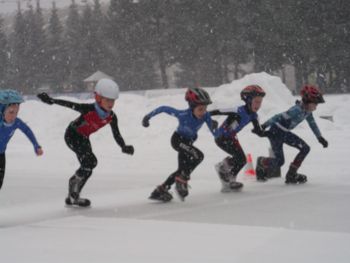 Das Wetter meint es diese Saison wirklich nicht gut mit den Kufenflitzern. Diesmal war es Schneetreiben, das pünktlich zu Wettkampfbeginn am Samstag in Chemnitz einsetzte und im Verlauf des Wettkampfes immer stärker wurde. Die Kids – und nicht nur die Kleinsten – fanden es gut, konnten sie doch zum ersten Mal in diesem „Winter“ einen Schneemann bauen.