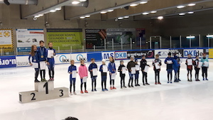 Dabei konnten sich in der Kategorie „Beginner“ die Short-Track-Kinder von den Eischnellläufern auf kurzen Kufen noch einige Kniffe abschauen. Mit Gold- und Silbermedaillen glänzten Lando Schenk und Florentine Blümel. 9 weitere Kinder kämpften in dieser Kategorie um gute Platzierungen in ihren Läufen. In der nächsthöheren Gruppe „Junioren E/F“ waren 6 Eisschnellläufer der Altersklasse 10 am Start und präsentierten sich in guter Verfassung. Die Short-Track-Starter in dieser Kategorie waren fast ausschließlich Kinder der Altersklasse 11 und 12. Insgesamt hat dieser bestens organisierte Wettkampf allen viel Spaß gemacht. Besonderer Dank gilt dabei den vielen fleißigen Helfer-Eltern, die großzügig, tolerant und hilfsbereit diese Meisterschaften unterstützten.