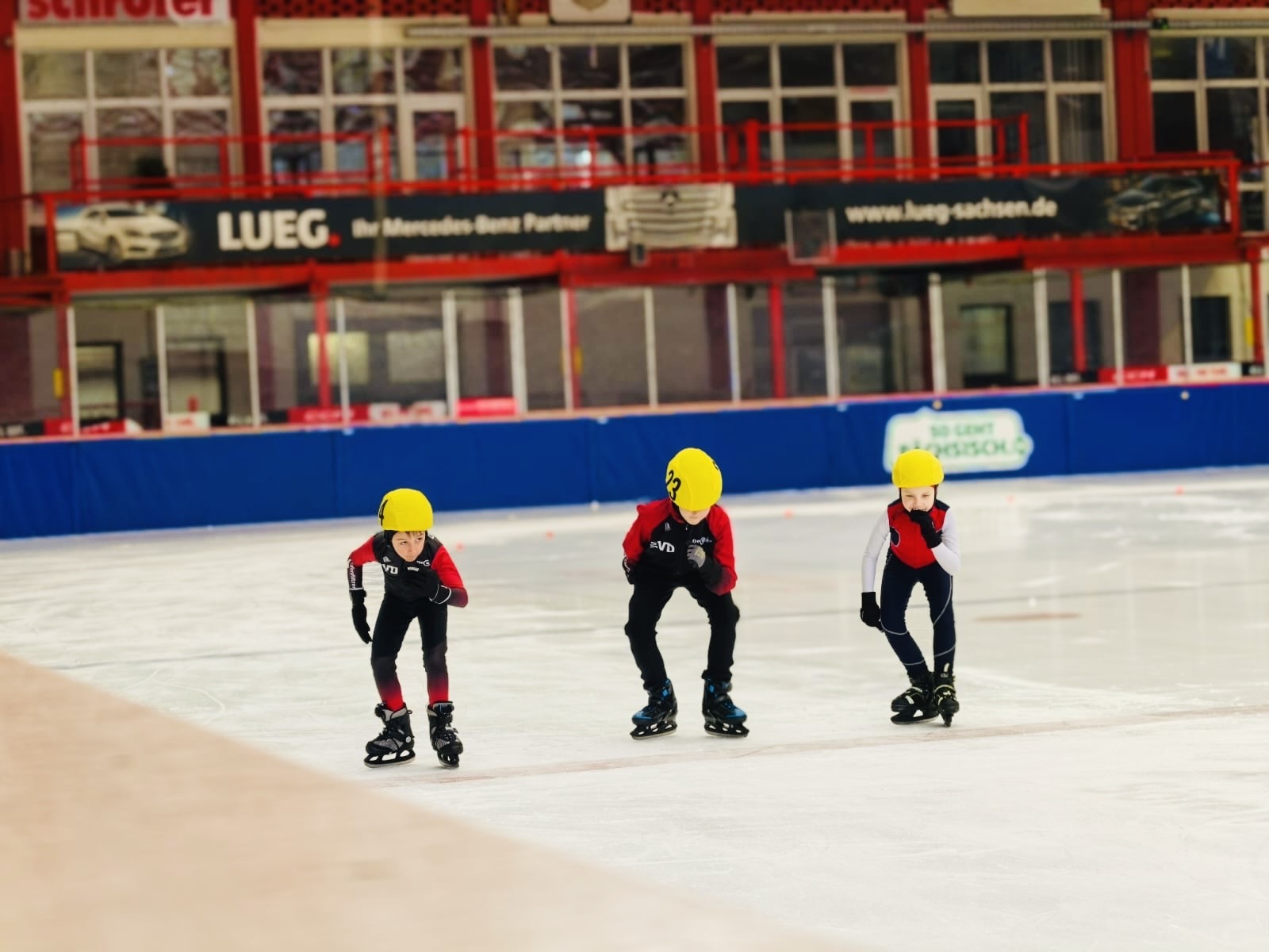 Heute kämpften die jüngsten Sportler*innen unseres Vereins um den Titel des Sachsenmeisters der Saison 2024/2025 in Crimmitschau. Bei winterlichen Temperaturen standen für unsere 17 Kufenflitzer der Altersklassen F1 und F2 der Eisgewandtheitslauf, ein Massenlauf sowie zum Abschluss die heißbegehrte Staffel auf dem Plan.