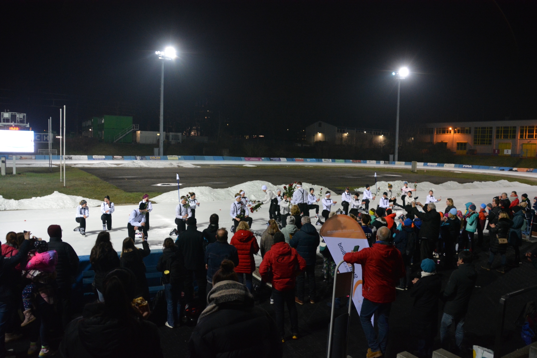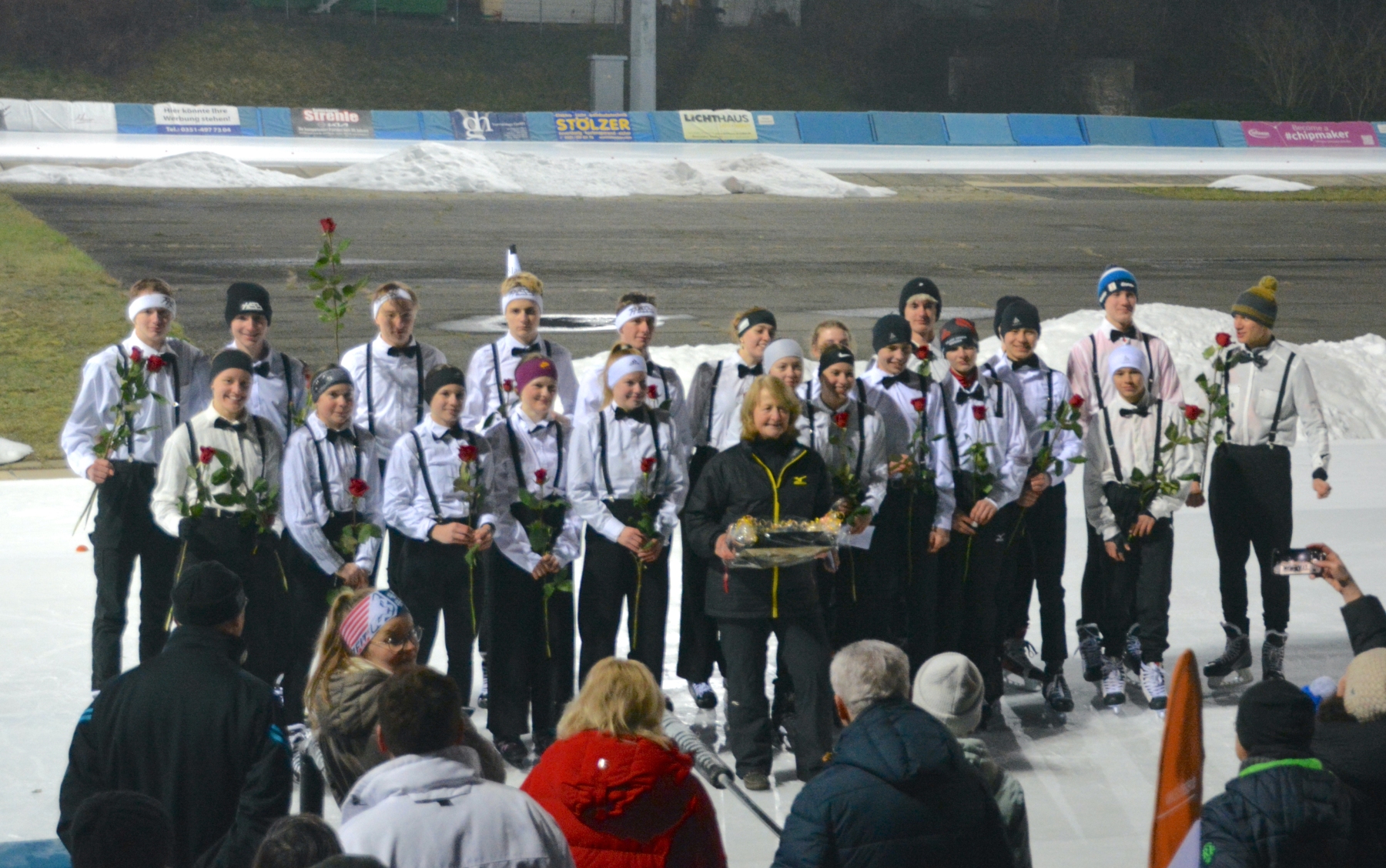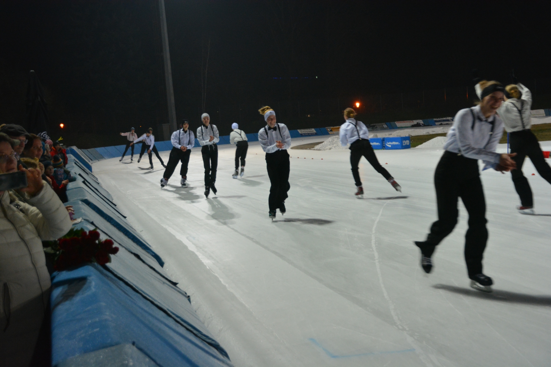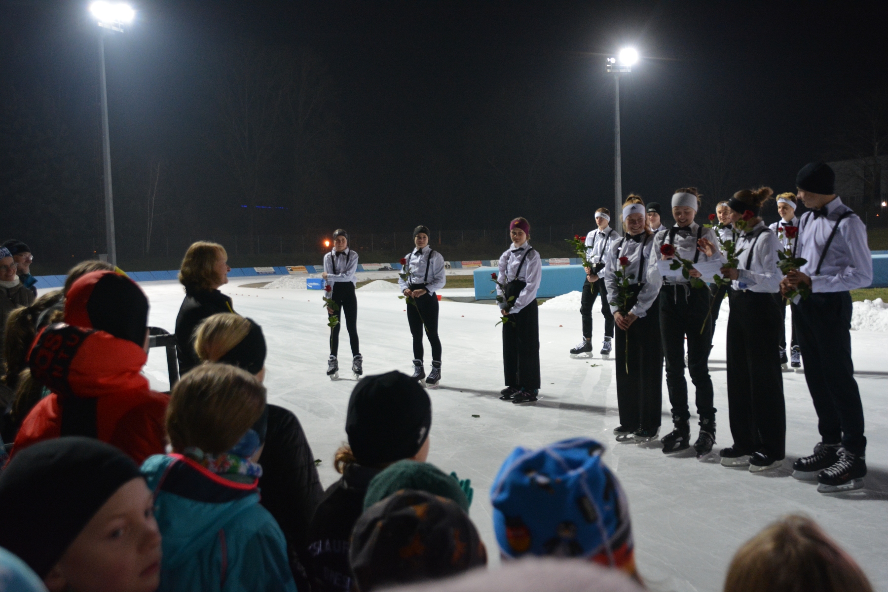 Nach diesem ersten sportlichen Highlight und überreichten Medaillen und Urkunden stand anschließend Trainerin Heike Reinwarth im Mittelpunkt, für die es nach über 40 Jahren Trainerinnentätigkeit ebenfalls der letzte Vereinswettkampf war. Eingeläutet mit einer Choreografie ihrer aktuellen und ehemaligen Trainingsgruppe auf dem Eis, schlossen sich Abschiedsreden und Videobotschaften an und bildeten einen gebührenden Abschluss einer erfolgreichen und verdienten Trainerinnenkarriere.